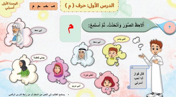 الوحدة الأولى أسرتي الدرس الأول حرف م لغتي (عرض بوربوينت)